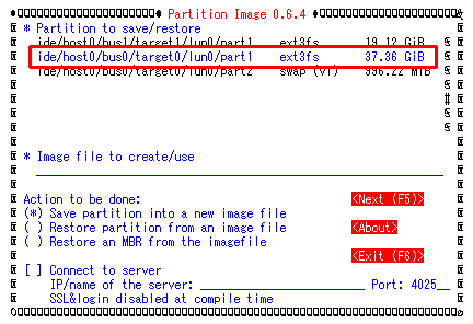 - Partition Imageを使用するには、コマンドラインとGUIの2つの方法がある。ここでは、メニュー形式で簡単なGUIでの方法を示す。