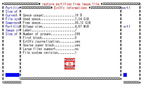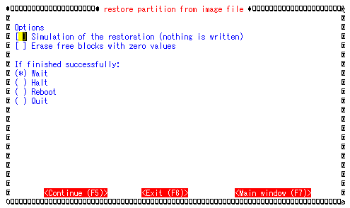 - リストアが終了したところで、再度、「partimage」と入力して「単純なリストア」の2項の「Action