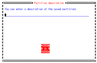 - 次画面の「Partition description」で説明を入れられるが、特に不要なのでTabを押してEnter(OK)を押す。