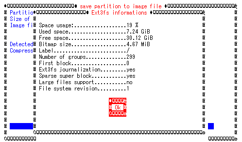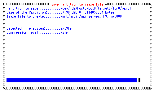- 検査が終了すると、保存対象のパーティション情報が表示されるので内容確認の上、Enterキーを押すと、保存が始まる。