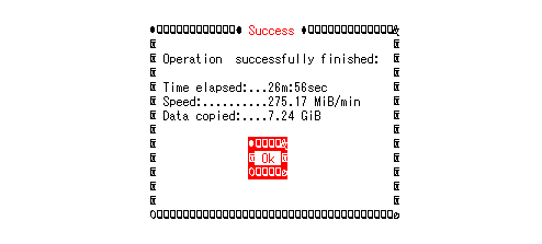 2Gで7.24GBは約27分かかりましたので、気長に待ちましょう。これに対し、後述しますがリストアは格段に早くなります。
