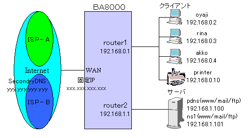 以下は、おやじ宅のネットワーク構成での設定です。