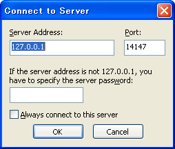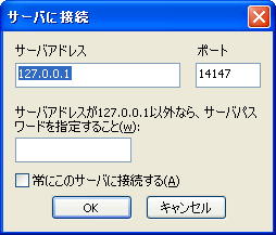 - 以上で、日本語化は完了である。デスクトップのFileZilla Serverをクリックすると、以下のように日本語化されたコンソールへのログイン画面となる。そのまま「OK」をクリックすれば管理画面が表示される。