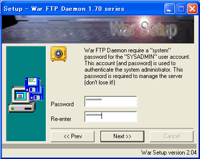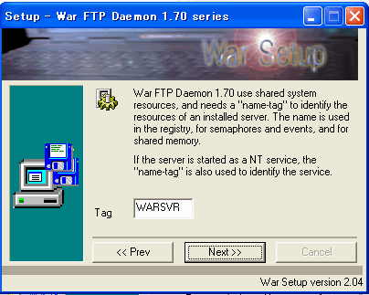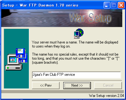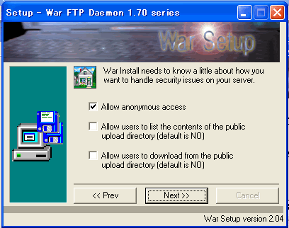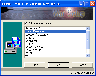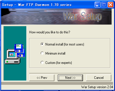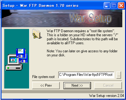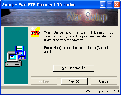 インストールは、まず WarFTPd をインストールし、必要に応じて日本語化パッチをあてます。