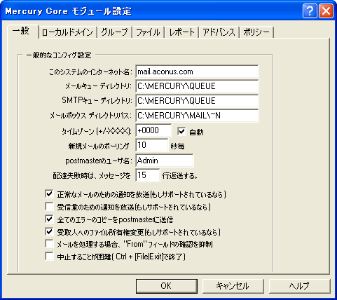 TCP/IPタイムアウトはプロバイダのSMTPとの接続監視時間であり、ポーリング間隔は、Mercuryが送信するメールがキューにないか監視する時間なので、TCP/IPタイム≦ポーリング間隔とすること。基本的には、プロバイダのサーバの応答時間や自分の負荷等を考えるデフォルトの30秒のままが良い。