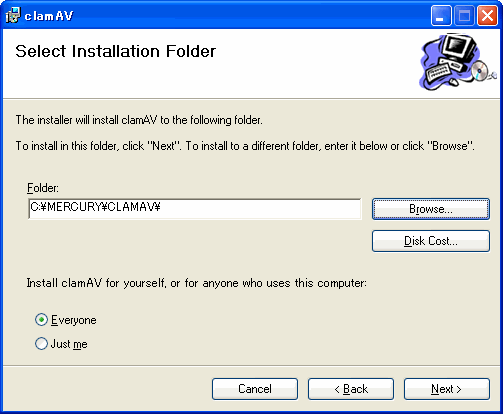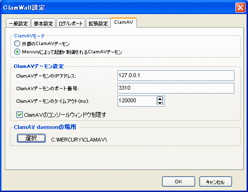 | 変更後 | #NotifyClamd "C:\Program Files\ClamAV\conf\clamd.conf" NotifyClamd "C:\MERCURY\CLAMAV\clamd.conf" |
