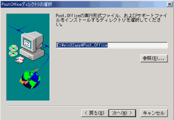 Post.Officeのインストールを起動すると、最初にインストールするディレクトリを確認してくるが、デフォルトの「C:\win32app\Post.Office」にインストールした。