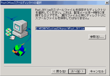 スプールディレクトリは、クライアントから送信したメールが一時的にスプール(保管)される領域である。デフォルトは「C:\winnt\system32\spool\Post.Office」であるが、おやじは、長期に渡り使用するとシステムドライブであるCドライブのフラグメント化が進むと考え、別のドライブにスプールディレクトリを作成した。