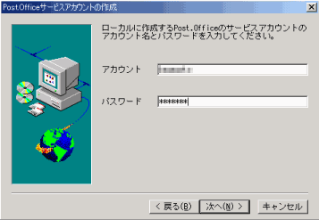 ローカルに作成するアカウント名とパスワードを登録して、アカウントを作成する。このアカウントでPost.Officeサービスが制御される。