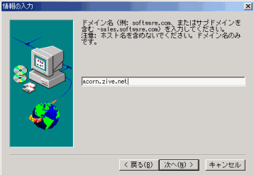 Post.Officeでメールを送受信するためのドメイン名を登録する。オリジナルドメイン名である 「example.zive.net」を登録。