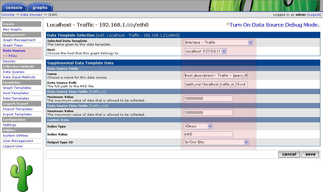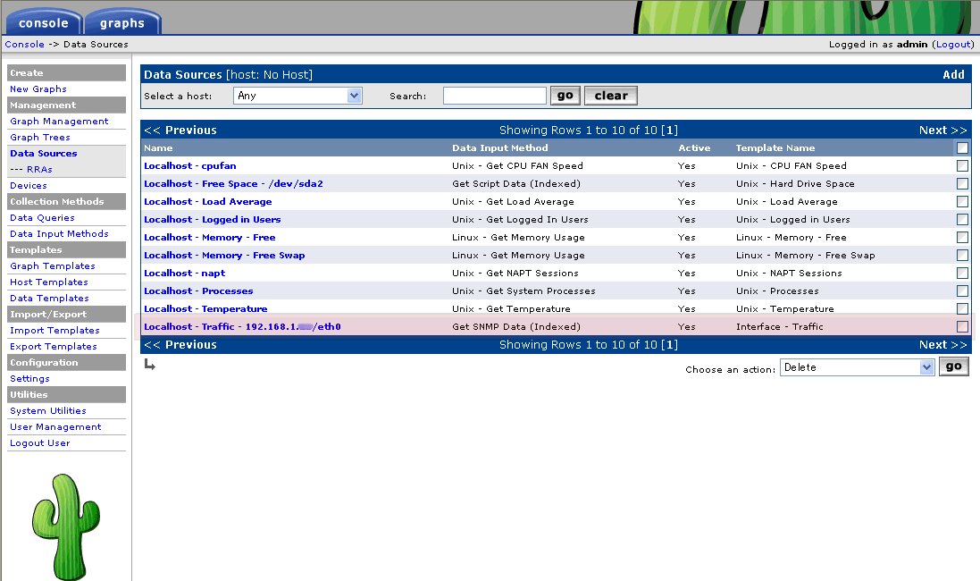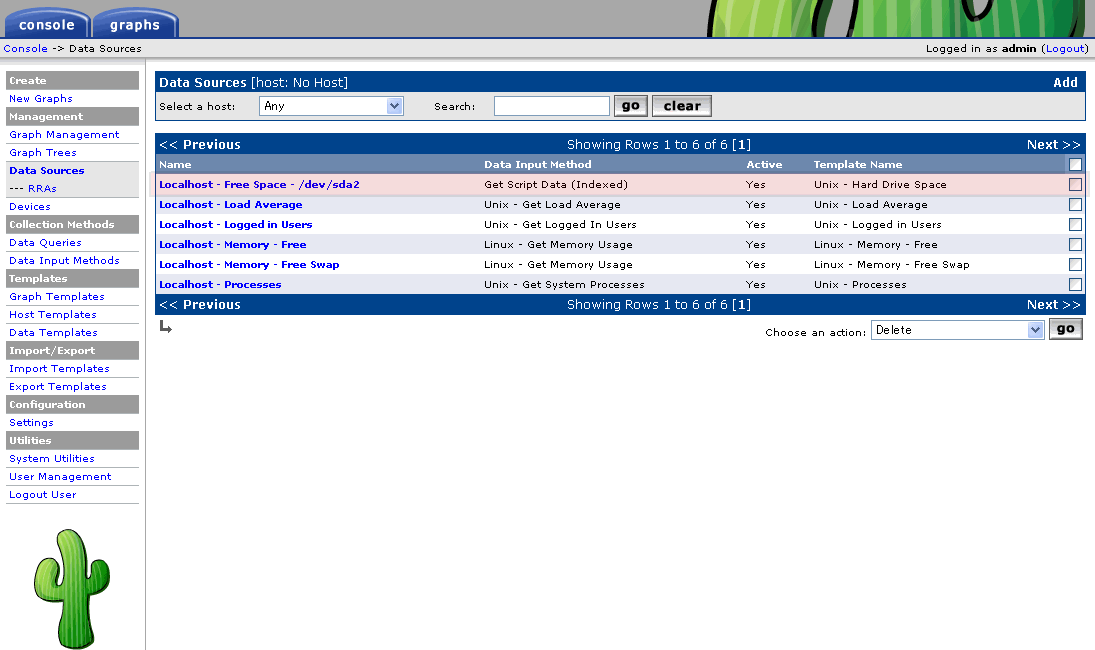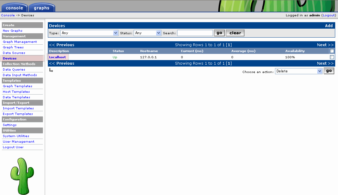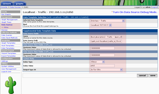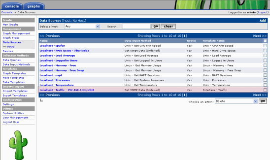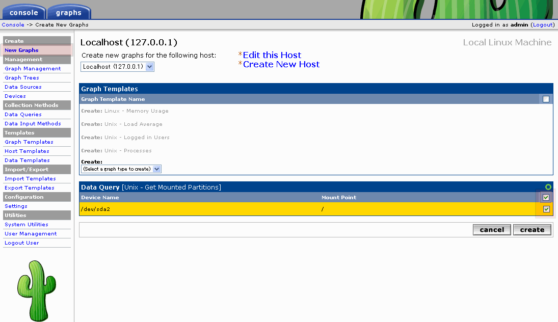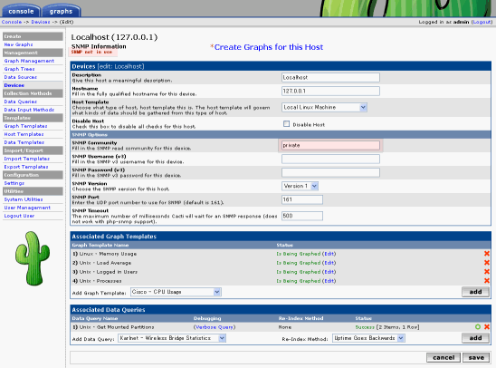 続けて監視対象の設定を行っていきますが、Cactiにはデフォルトで典型的なテンプレートが用意されているので、まずはこれを利用した簡易監視を行うことにします。後半では、自作スクリプトを利用した監視についても触れることにします。