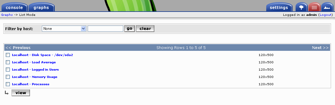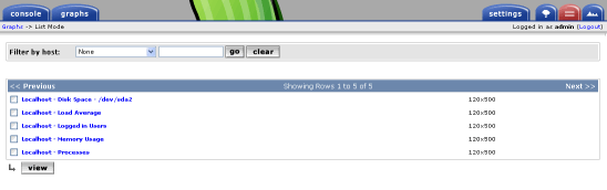 - メニューの [New Graphs] を選択すると、追加した [SNMP - Interface Statistics] に関する