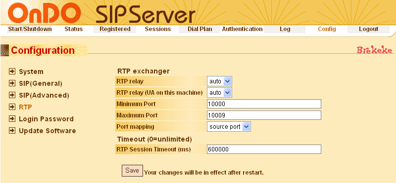ここでは、OnDO SIP Serverの設定を行うが詳細はドキュメントを参照のこと。設定を行うため、「Config」タブをクリックする。