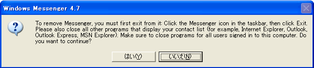 Windows Messenger 5.1 をインストールするには、まず4.7をアンインストールしなければなりません。これは、普通の「アプリケーションの追加と削除」では削除できませんので、以下の方法で削除します。