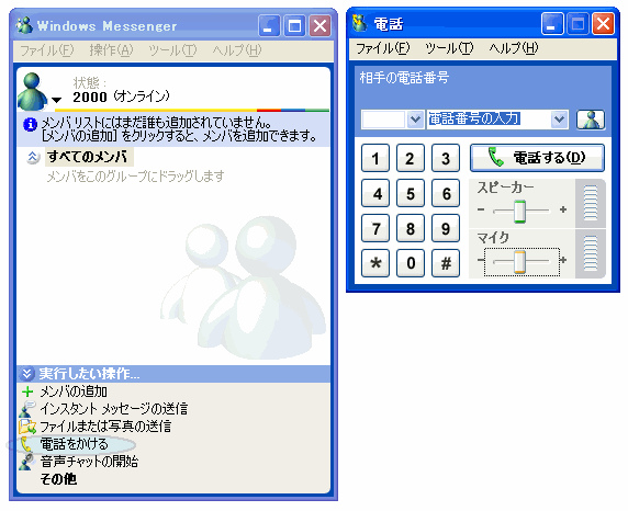 Windows Messenger ではPCから一般電話へ電話をかける機能がありましたが、